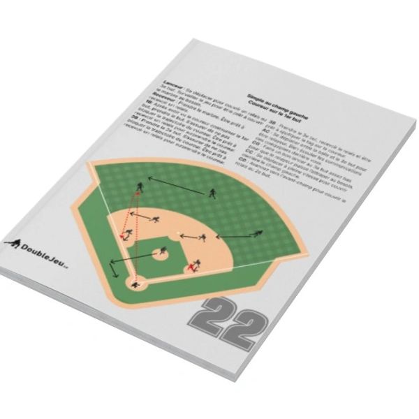 Sous forme d'un carnet facile à comprendre qui se glisse parfaitement dans la poche arrière d'un pantalon de baseball, cet aide-mémoire est idéal pour accompagner les jeunes dans leurs apprentissages des déplacements, couvertures et relais, peu importe leur position sur le terrain.